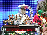 | Dustin the Turkey's echte naam is Johnny Morrison. Hij werd op het podium bijgestaan door de zangeressen Kitty B. (echte naam: Kathleen Burke) en Ann Harrington. | |